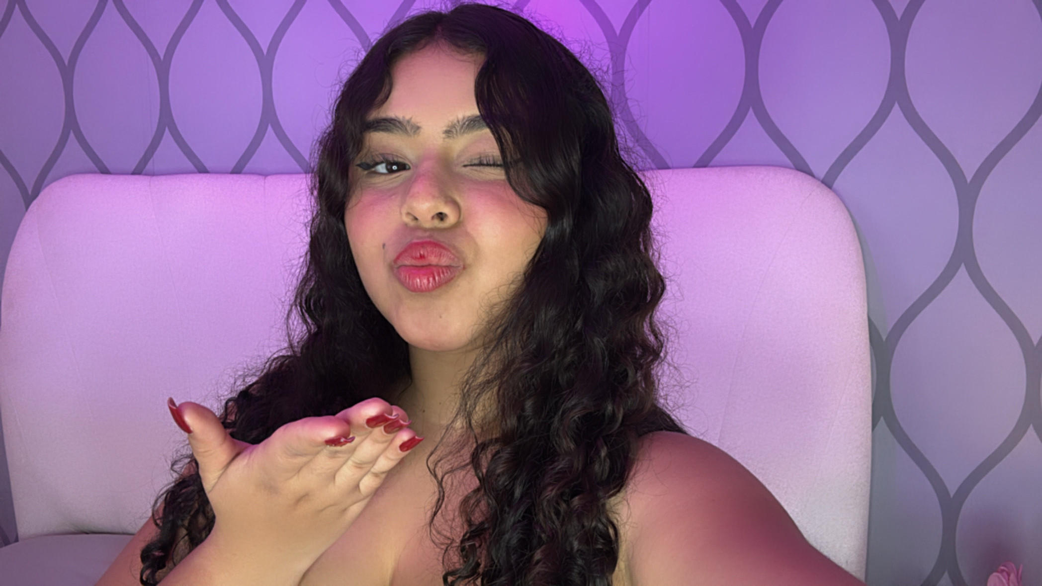 It's me, a cloud of sweetness with a touch of malice. My curly hair falls free, messy perfect, because that’s how I am: natural, authentic, but with a shine that seduces without you noticing it immediately. My lips, my look and my posture say it all: I am comfortable in my skin, happy to be who I am, and ready to conquer with the perfect mix of innocence and desire..